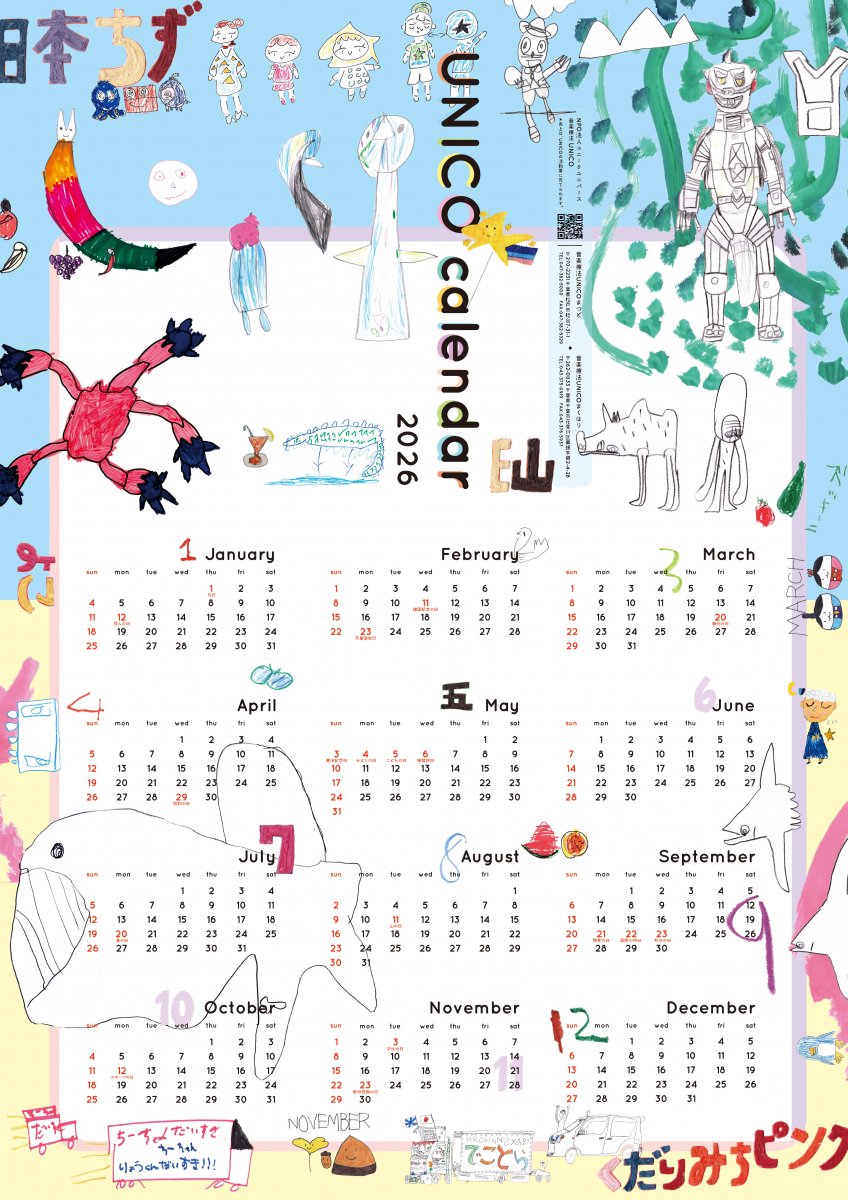 今年もcontioさん のコーディネートでNPO法人ユニークユニバース(UNICO)さんのポスタータイプのカレンダーをデザインさせていただきました。