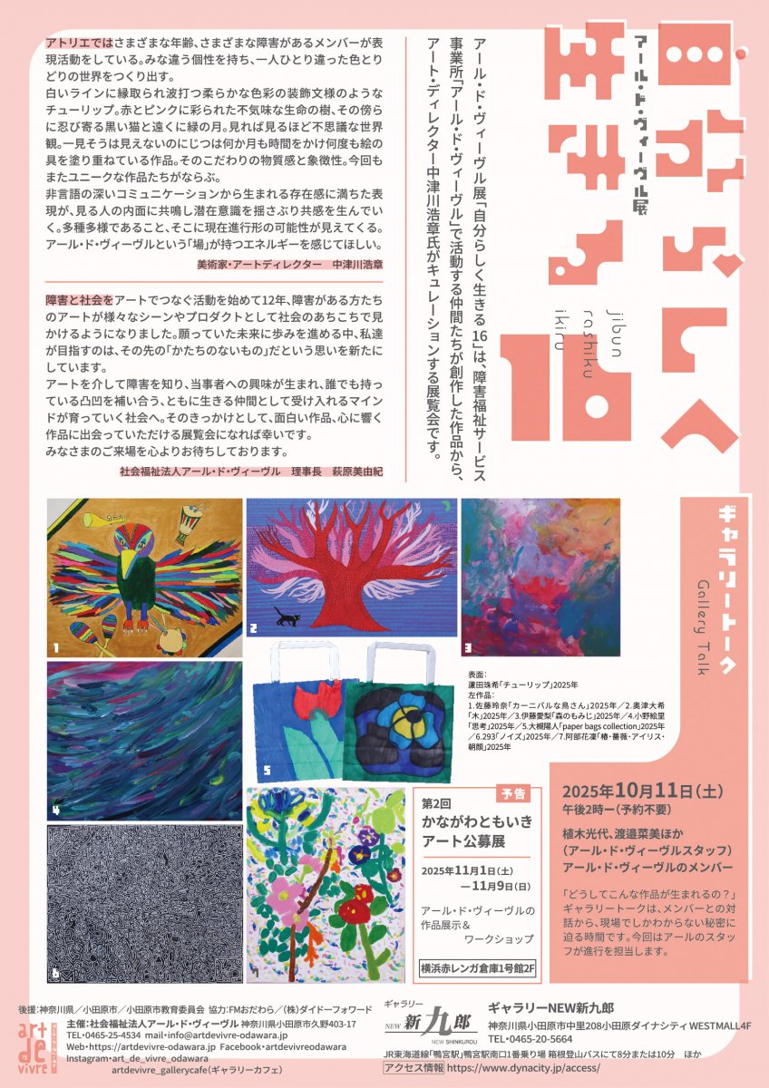 contioさん のコーディネートでアール・ド・ヴィーヴルさんで活動する方たちが創作した作品展示、『自分らしく生きる』展のチラシを作成させていただきました。