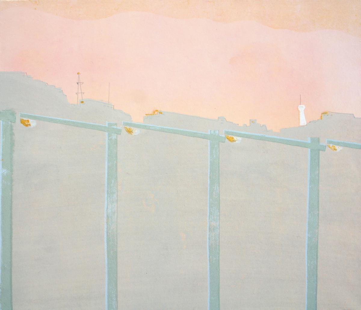 木版画、ドライポイント、透明水彩、岩絵の具、