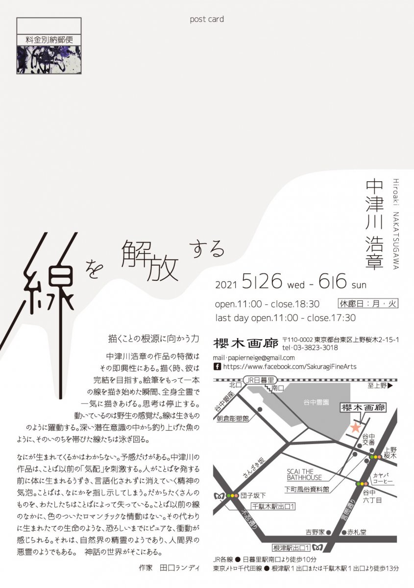 cintioさん のコーディネートで、2019年に引き続き、中津川浩章さんの展覧会DMをデザインさせていただきました。
