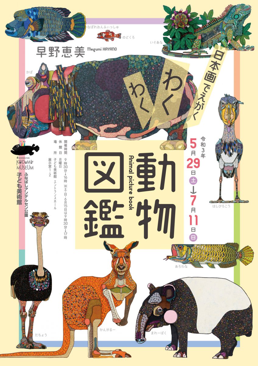 早野恵美さんの展示、『日本画でえがくわくわく動物図鑑』展のチラシ・ポスターを作成いたしました。