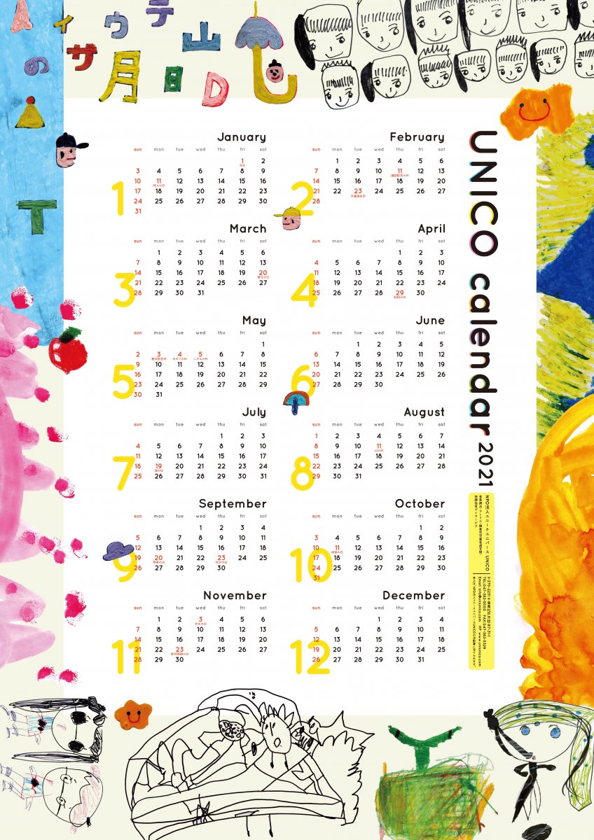 contioさん のコーディネートで松戸市にある、NPO法人ユニークユニバース(UNICO)さんのポスタータイプのカレンダーをデザインさせていただきました。