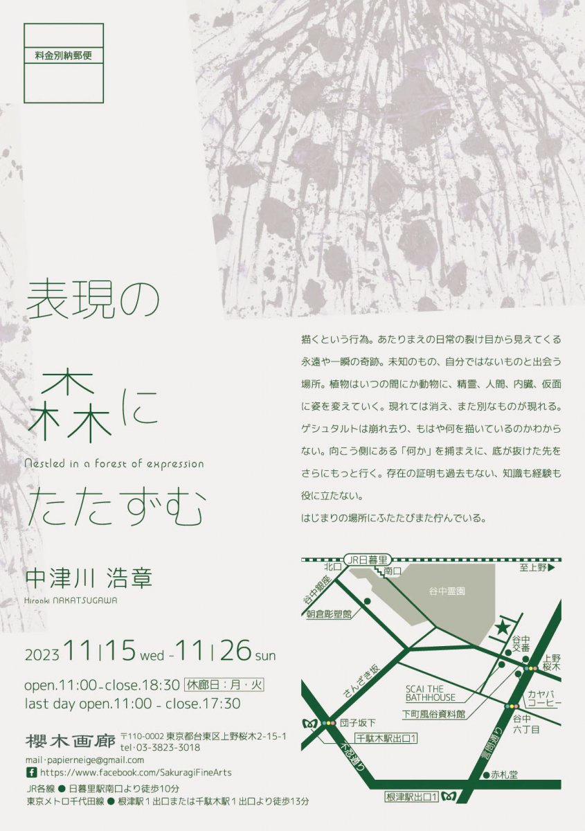 cintioさん のコーディネートで、2022年に引き続き、中津川浩章さんの展覧会DMをデザインさせていただきました。