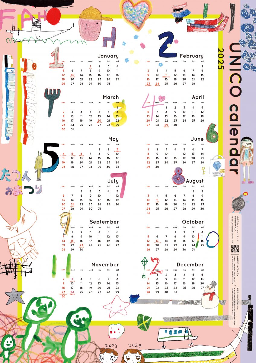 今年もcontioさん のコーディネートでNPO法人ユニークユニバース(UNICO)さんのポスタータイプのカレンダーをデザインさせていただきました。