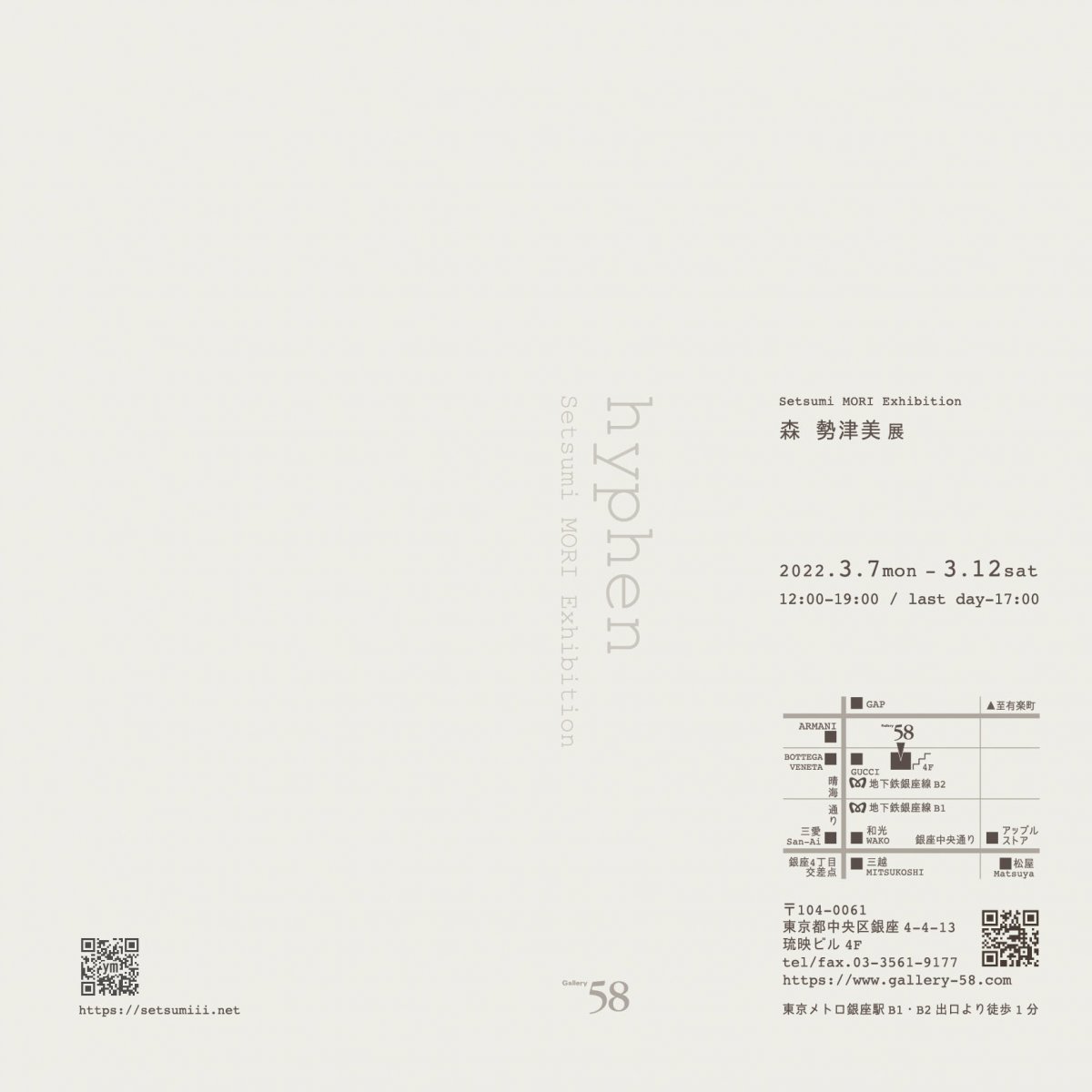 10年ぶりに開催させていただいた、ギャラリー58での個展。