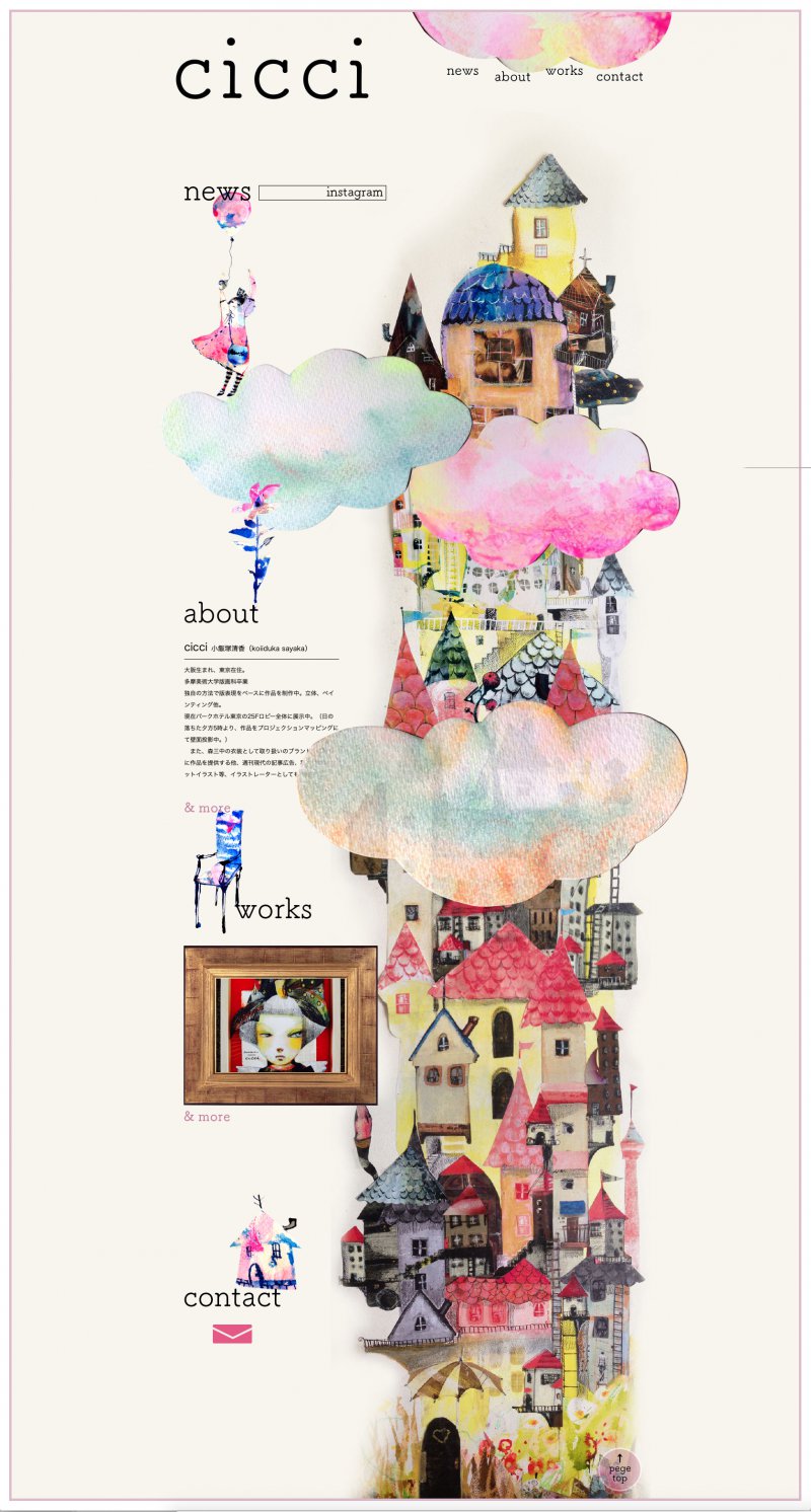 友人の作家であるcicciこと小飯塚清香さんのHPデザインです。