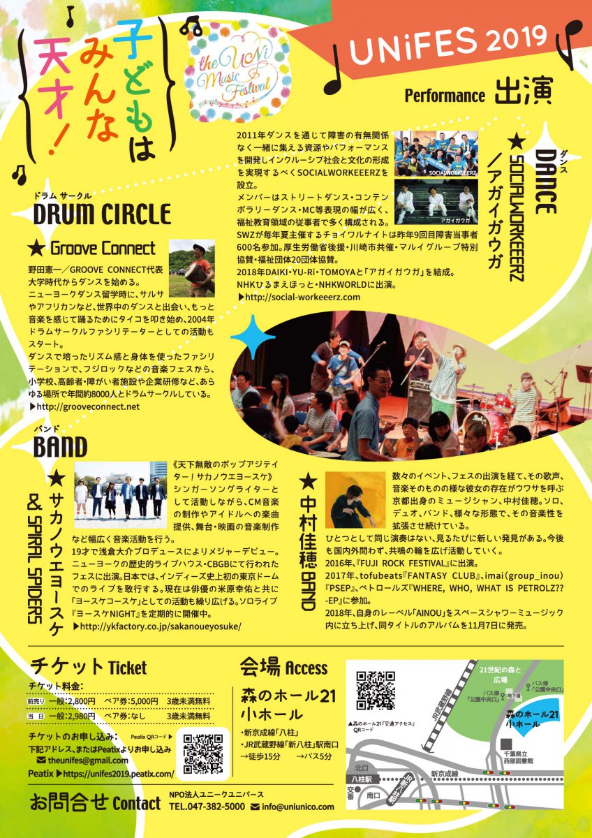 の音楽イベントUNiFESのクラウドファンディング用バナーと、A4チラシのデザインをさせていただきました。