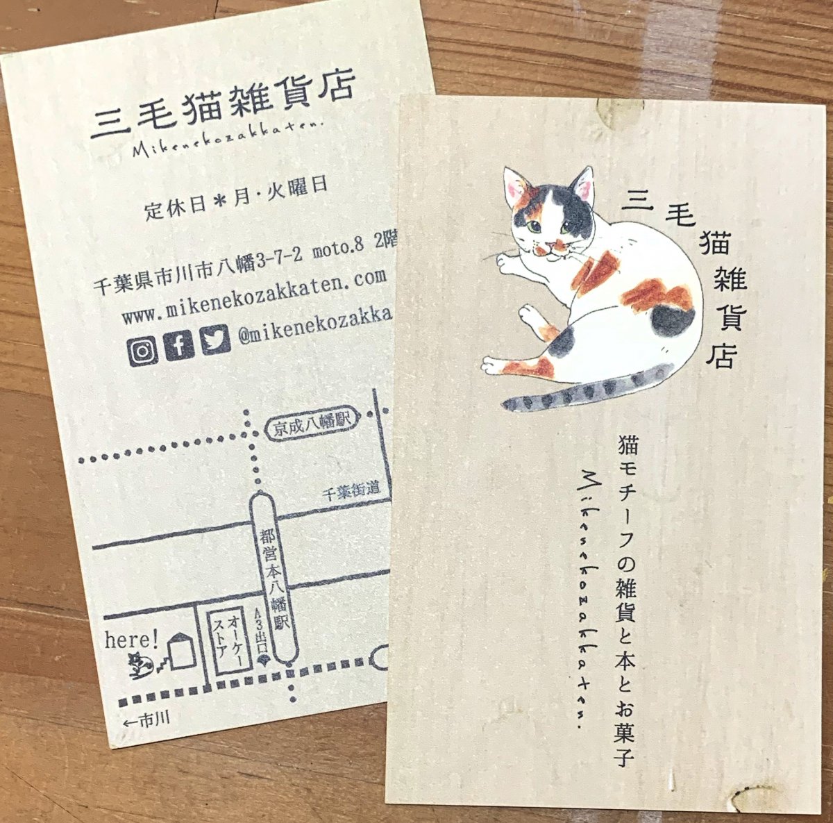 三毛猫雑貨店様のロゴ制作とショップカード、ポストカードをデザインさせていただきました。(三毛猫イラスト/バンナイリョウジさん)
