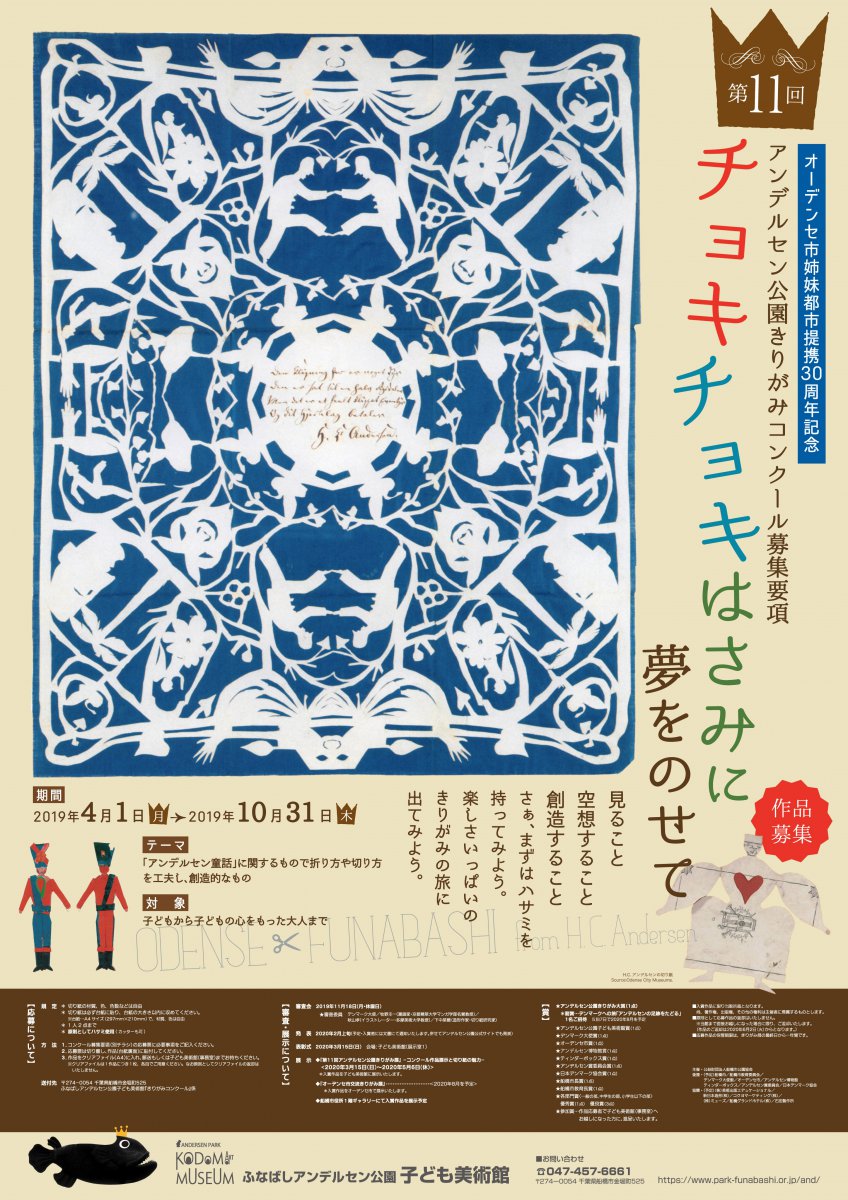 実は切り紙作品も多く手掛けているアンデルセン。(私も子ども美術館でのお仕事を通じて知りました!)そのアンデルセンの作品をメインビジュアルにしてデザインしています。