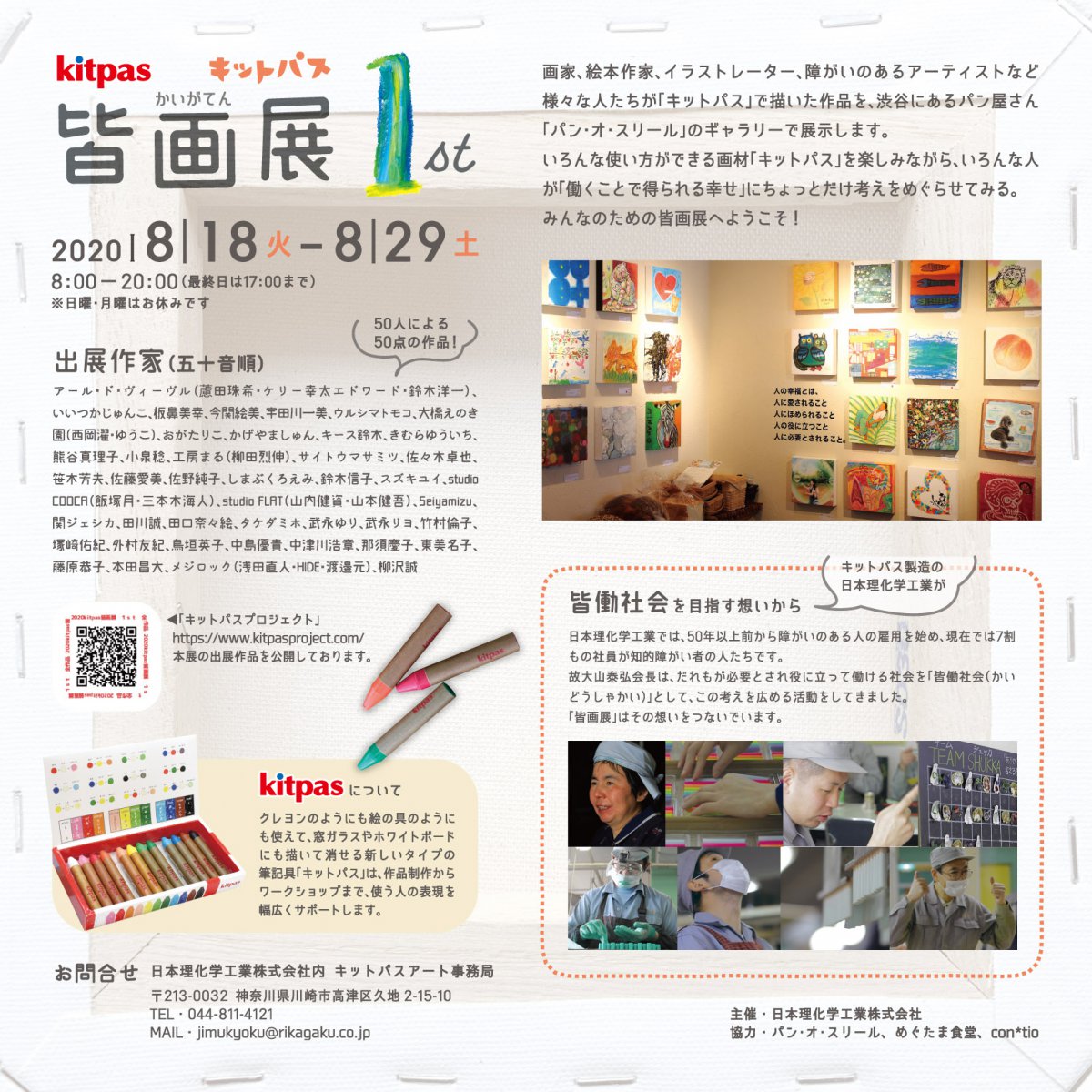 cintioさん のコーディネートで、今年も日本理化学工業株式会社主催の『キットパス皆画展 2020』(ベーカリーカフェ「パン・オ・スリール」/渋谷)のチラシをデザインをさせていただきました。